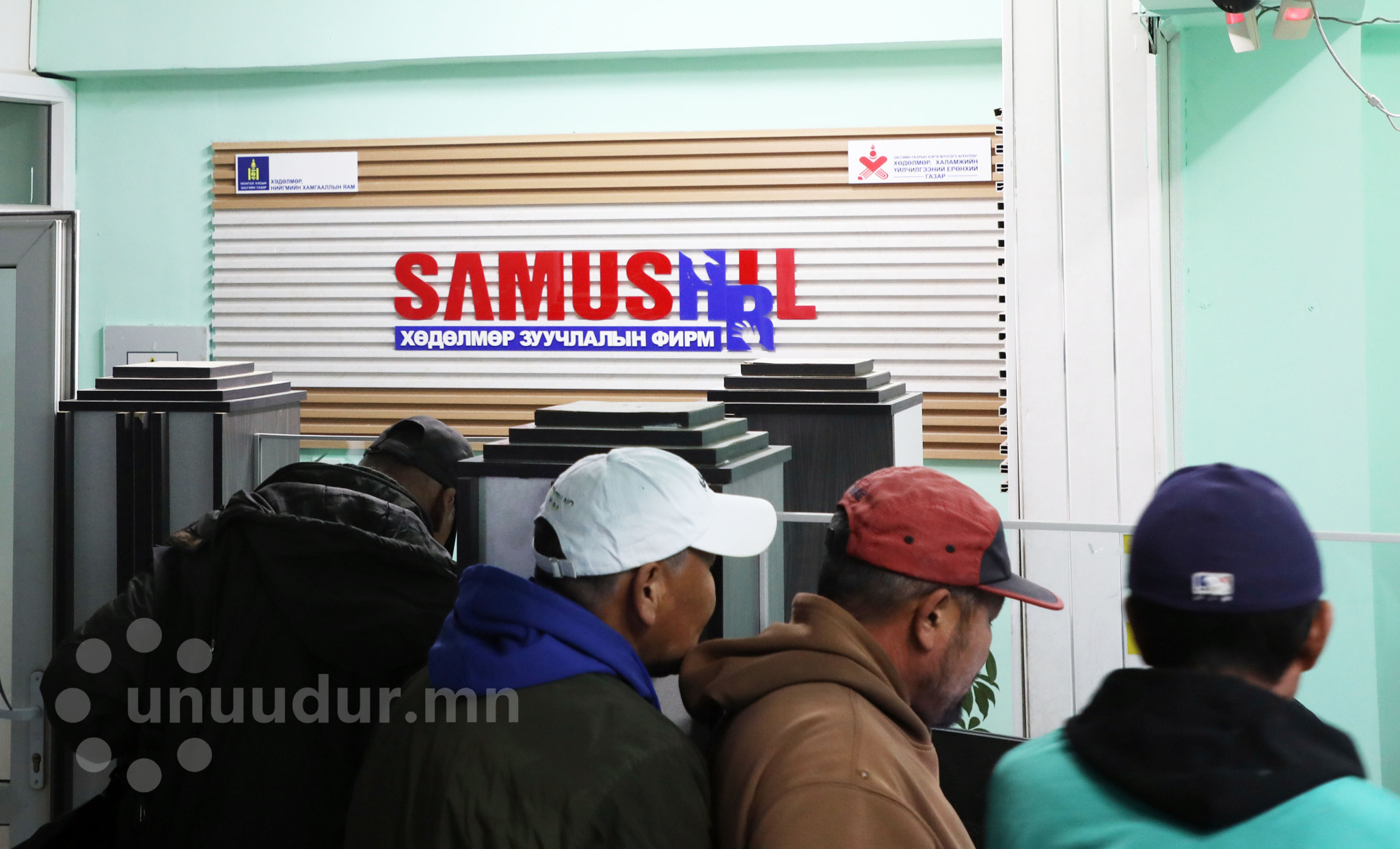 Өдрийн ажлын бирж буюу “Самушил” нь хорооллын эцэст байрлалтай жижгэвтэр байшингийн гуравдугаар давхрын нэг өрөө. Өчигдөр биднийг тэнд очиход ажил хайсан, ажилд гарахаар зэхсэн олон хүнхөлхөж байлаа. Ажлын хувцас өмсөж, үүргэвч үүрсэн хүмүүс “Самушил”-ын гадна зогсоцгоон тамхилж, зарим нь оффист утсаа “маажин”-гаахаана, ямар ажил гарч буйг сонсон, бас аль зүг рүүявах саналаа хэлцгээх аж. Эрчүүд ихэвчлэн барилга болон зам завсар, ногоон байгууламж, тохижилтын ажилд явцгаадаг бол эмэгтэйчүүдэд цэвэрлэгээний ажил олдоно. Нэг эмэгтэй цаг орчим хүлээсэн ч “ажил орж ирээгүй”. Баянголдүүргийн XI хороо Зурагтад амьдардаг тэрбээр “Манайх Баянхонгорын айл. Аймгийн төвдөө амьдардаг ч хоёр оюутнаа даган сүүлийн гурван жил хотод айлын хашаанд өвөлжиж байна. Өдрийн ажлын биржээр зуучлуулж цөөнгүй удаа ажилд гарч, ашиглалтад дөнгөж оруулсан орон сууцын цэвэрлэгээ хийсэн. Өнгөрсөн хавар 10.00-19.00 цаг хүртэл ажиллахдаа, 30 орчим минут амарч хооллоод, өдөрт 80 000 төгрөгийн цалин авсан. 10-аад өдөр ажиллаад сая гаруй төгрөгийн цалин авсан нь наддаа болоод л явчихсан. Өдөртөө цалингаа авдаг, ажил хиймээр бол ирээд ажиллачихдаг нь тун зүгээр шүү” хэмээн ярив. Харин ХААИС-ийн гуравдугаар дамжааны нэгэн оюутан “Би өнгөрсөн хавраас хойш долоо хоногт 2-3 өдөр ажиллаж байгаа. Голдуу барилгын туслах хийдэг. Өнгөрсөн зун явган хүний зам засах, бетон хуулах ажил олон удаа хийсэн. Өдрийн цалин 90 000-100 000 төгрөг. Үүнээсээ хоёр мянгыг л суутгуулж, үлдсэнийг нь оройдоо авчихдаг. CU, GS-25 зэрэг дэлгүүрт ажиллахад нэг цагт 6000-7000 төгрөгийн цалинтай нь бага үнэлгээ. Барилга, замын ажил хэцүүболовч цалин өндөр. Бас үргэлж ажиллаад байхгүй, боломжтой үедээ хийдэг нь таалагддаг” гэв.