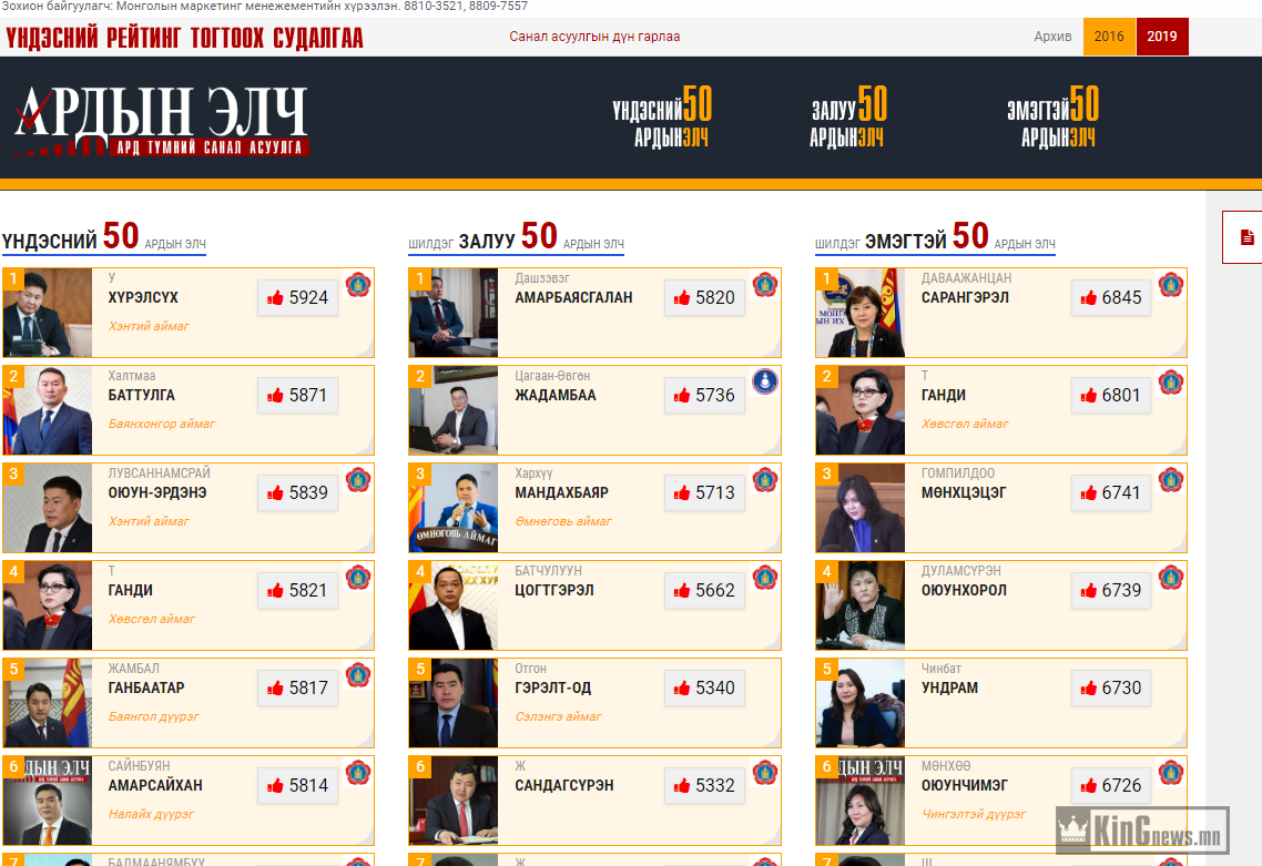 “Шилдэг 50″ улстөрч шалгаруулах “Ардын элч” үндэсний рейтинг тогтоох цахим санал асуулгын дүн гарлаа
