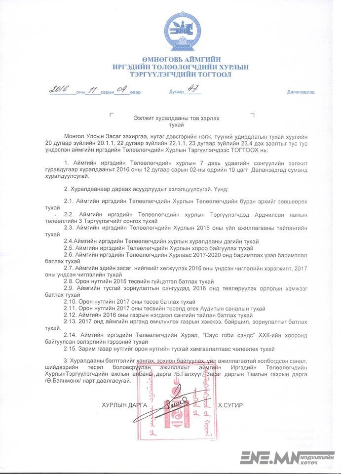 Өмнөговь аймгийн ИТХ-ын тэргүүлэгчид ирэх сарын эхээр буюу 12 дугаар сарын 02-ны өдөр ээлжит хуралдаанаа хийхээр тогтоол гаргажээ. Хуралдаан Даланзадгад суманд хуралдах бөгөөд 15 асуудлыг хэлэлцэх юм. Хуралдааны бэлтгэл ажлыг хангах, үйл ажиллагаатай холбоотой санал шийдвэрийг боловсруулан ...