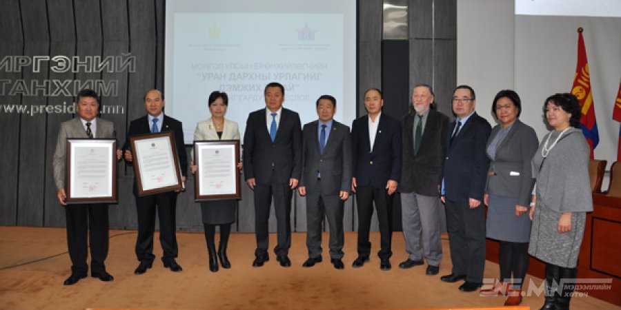 Ерөнхийлөгчийн 2016 оны наймдугаар сарын 9-ний өдөр гаргасан Уран дархны урлагийг дэмжих тухай 115 дугаар зарлигийг гардуулах ёслол өнөөдөр боллоо.