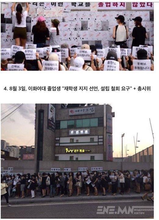 Залуучууд тэтгэмж мөнгөний төлөө жагсдаггүй, өлслөө гэж жагсдаггүй, учир нь Солонгост залуучууд сурахынхаа хажуугаар цагийн ажил хийдэг, залуу насандаа өлсөх, ядрах нь зайлшгүй гэж үздэг. Харин энэ удаа оюутан охидын хөдөлгөөн Солонгосын нийгмийг бүхэлд нь сэгсэрч донсолгов.