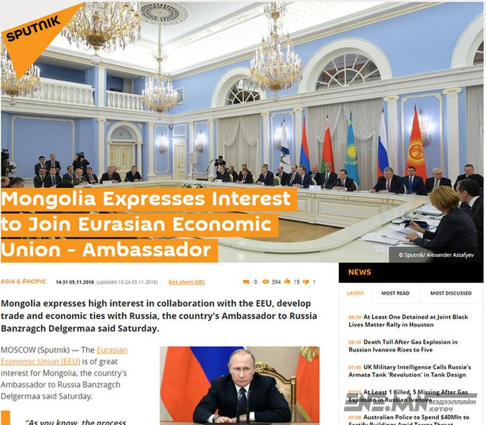 "Sputniknews” цахим хуудсандгарсан нийтлэлийг толилуулжбайна.