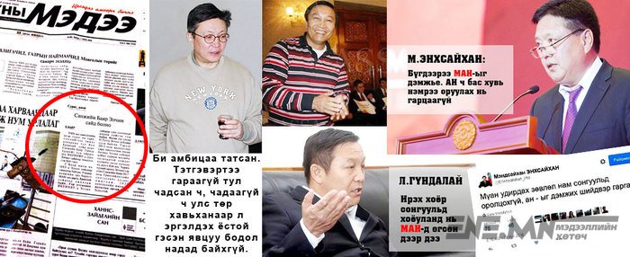 Ерөнхийлөгчийн сонгуульд МАН ялвал дээр. Өөр нам гээд дэмий. Ард түмэнд тэгж л хэлмээр байна. Тэр нь ч дээр. Ирэх хоёр сонгуульд хоёуланд нь МАН-д өгсөн дээр дээ, яршиг. МАН харин 100 хувь үүрэг хариуцлагаа хүлээгээд явж байна биз. Тэнэг л биш бол тэр нь дээр. Ард түмэн маань ч элдэв юманд хууртах юм даа, хөөрхий” гэсэн байна. Мөн түүний ийн хэлснийг М.Энхсайханых шиг зурагт хуудас болгон олон нийтийн сүлжээгээр цацсан байдаг. Харин М.Энхсайхан Элчин сайд болоод яваад өглөө. Мань эрд юу өгөх нь одоогоор тодорхойгүй. Удахгүй ил болох биз ээ.