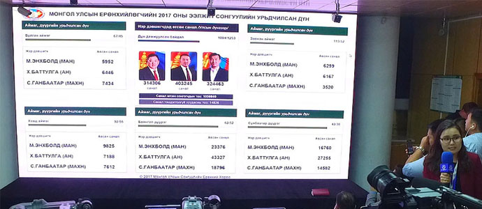 2017 оны Монгол Улсын ерөнхийлөгчийн сонгуульд эрх баригч МАН-аас парламентын спикер Mieygombo Enkhbold, сөрөг АН-аас бизнесмэн, жудогийн нэртэй бөх Khaltmaa Battulga, гуравдахь хүчин буюу МАХН-аас Үйлдвэрчний эвлэлийн зүтгэлтэн асан Sainkhuu Ganbaatar өрсөлдсөн боловч эхний санал хураалтаар хэн нь ч 50-иас илүүгүй санал авч чадаагүй. Улмаар хоёр дахь шатанд Khaltmaa Battulga, Mieygombo Enkhbold нар өрсөлдсөнөөс Battulga 50.6 хувийн саналаар ялалт байгуулсан билээ.