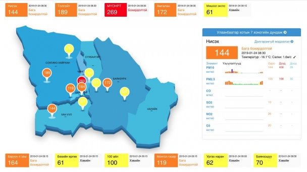 Харин дөрвөн байршилд агаар бага зэргийн бохирдолтой байгаа бол МҮОНРТ орчимд 269-ыг зааж бохирдолтой байна.