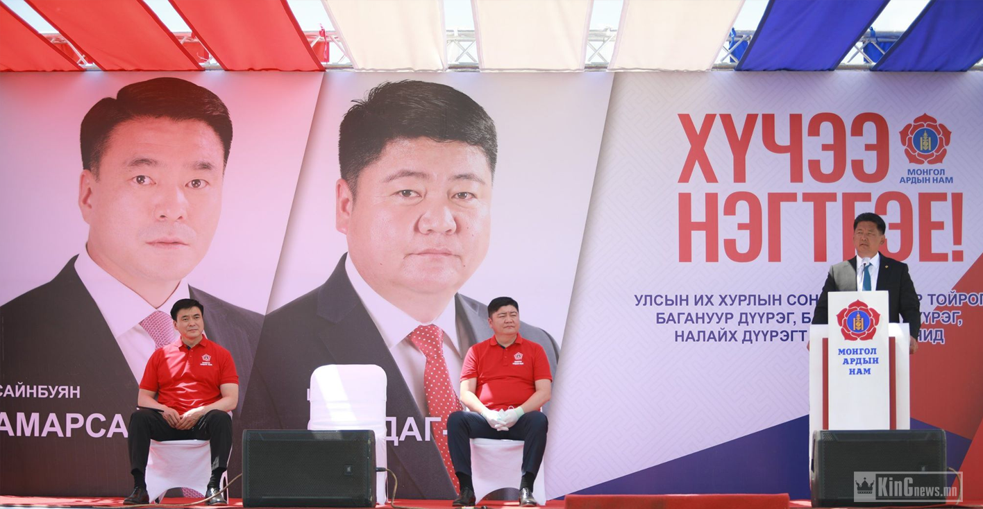 Тэрээр УИХ-ын сонгуулийн 21 дүгээр тойрог Багануур, Багахангай, Налайх дүүрэгт МАН-аас нэр дэвшигч С.Амарсайхан, Ц.Сандаг-Очир нарын тухай ярихдаа "Энэ хоёр сайхан залуу маань та бүхнийхээ төлөө зүтгэнэ. Нэг нь Улаанбаатар хотыг, нөгөөх нь Багануур дүүргийг маш сайхан авч явж байгаа. Төр улсдаа олон жил зүтгэнэ. С.Амарсайхан бол жирийн уурхайчин гэр бүлийн хүүхэд, Налайхад өгч өндийсөн унаган хүүхэд. Харин Ц.Сандаг-Очир бол жирийн малчин айлын хүүхэд, Багануурын унаган хүүхэд. Хэн хэн нь ёс суртахуунтай, зоригтой, эх орондоо хайртай, төр түмний эрх ашгийг өөрийнхөөсөө дээгүүр тавьдаг. Та бүхэн маань энэ хоёрыгоо багаар нь дэмжиж өгөөрэй” хэмээн уриаллаа.