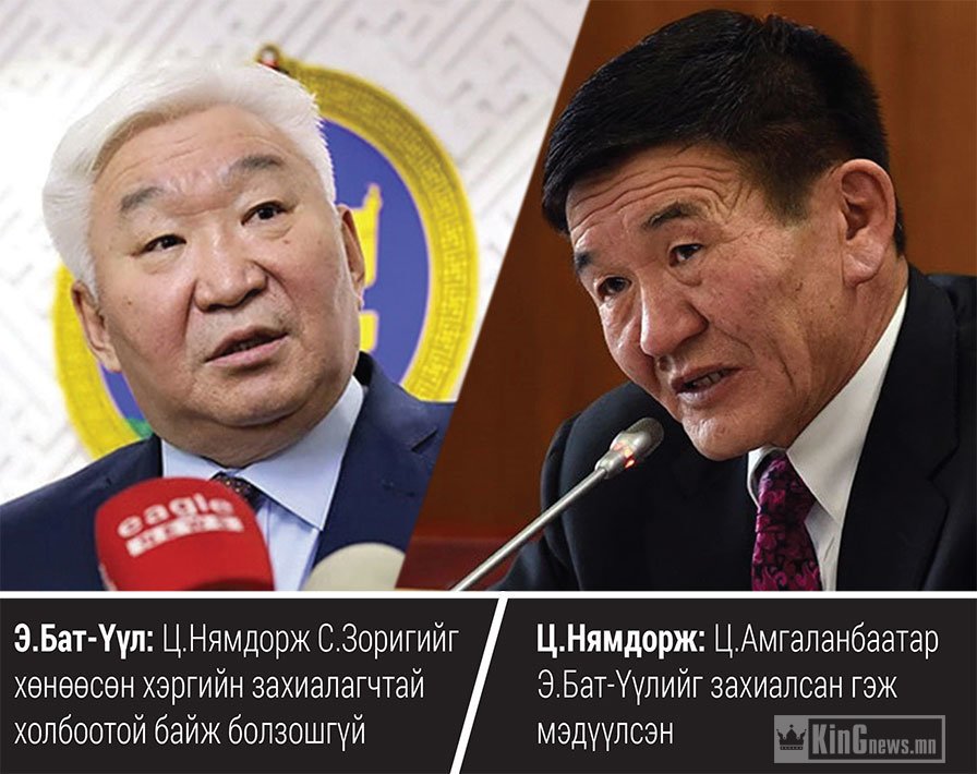 Энэ сарын 10-ны өдөр Засгийн газрын 100 хоног тохиож, хийж хэрэгжүүлсэн ажлаа тайлагнасан. Энэ үеэр ЗГХЭГ-ын дарга Ц.Нямдорж ”С.Зоригийг хөнөөсөн хэргийн захиалагч Э.Бат-Үүл гэдгийг Ц.Амгаланбаатар мэдүүлсэн” гэж мэдэгдсэн юм. Харин Нийслэлийн Ардчилсан намын дарга Э.Бат-Үүл энэ сарын 12-нд мэдэгдэл хийж, "С.Зоригийг хөнөөсөн хэргийн захиалагчтай Ц.Нямдорж холбоотой байж болзошгүй” гэх үндэслэлүүдийг тайлбарласан юм. Тэдний хэний үг үнэн бэ гэдэг анхаарал татаж байна. Талуудын байр суурийг хүргэж байна.