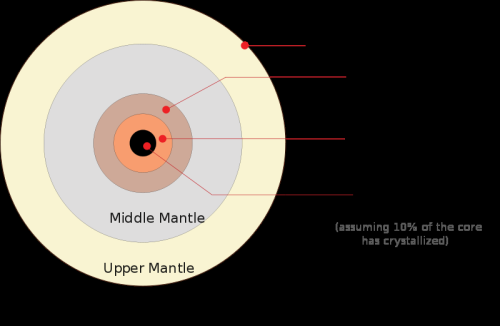 Сарны дотоод бүтэц нь дэлхийнхтэй ойролцоо ба царцдасны зузаан нь 55 км, манти нь 1000 км, түүнээс цаашх гүнд цөм нь оршдог аж.